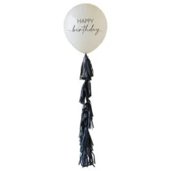 Nude And Black Happy Birthday Latex Balloon With Tail