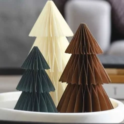 Cream Honeycomb Trees Decorations With Macrame Tassels (4pk)