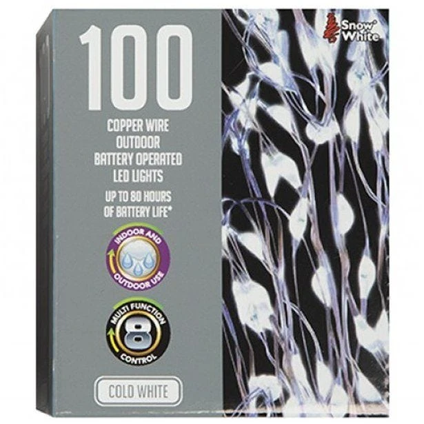 100 Cold White Outdoor Copper Wire – Battery Operated