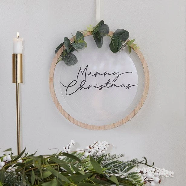- 1 x 20cm Acrylic disc with black printed ‘Merry Christmas’