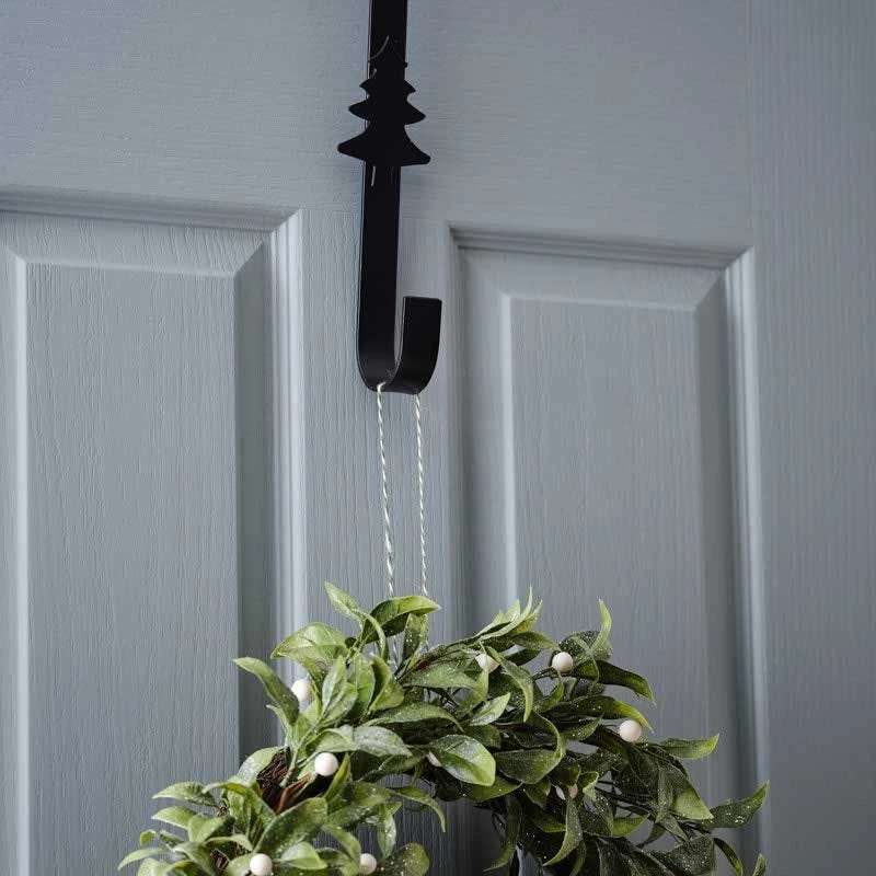 Display your festive wreath with ease using this black metal Christmas wreath door hanger. Each pack contains 1 x Christmas wreath hanger measuring 29cm (H) x 7cm (D). The hook depth over the door is 4cm.