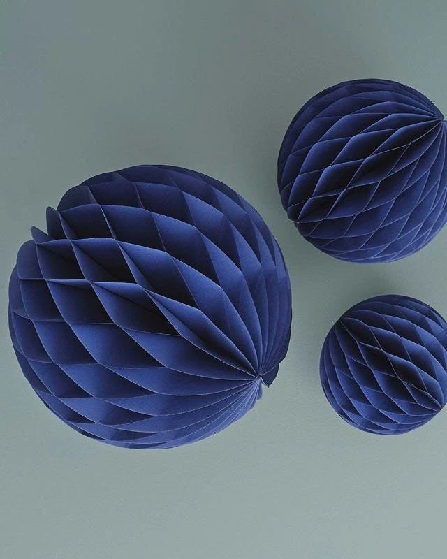 - 3 x blue Honeycomb paper decorationsin 15/20/30cm