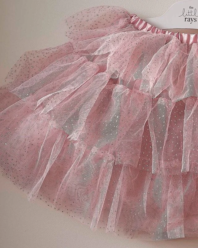 This beautiful tutu is made from pink tulle with silver spots and features a satin waistband. 100% polyester.