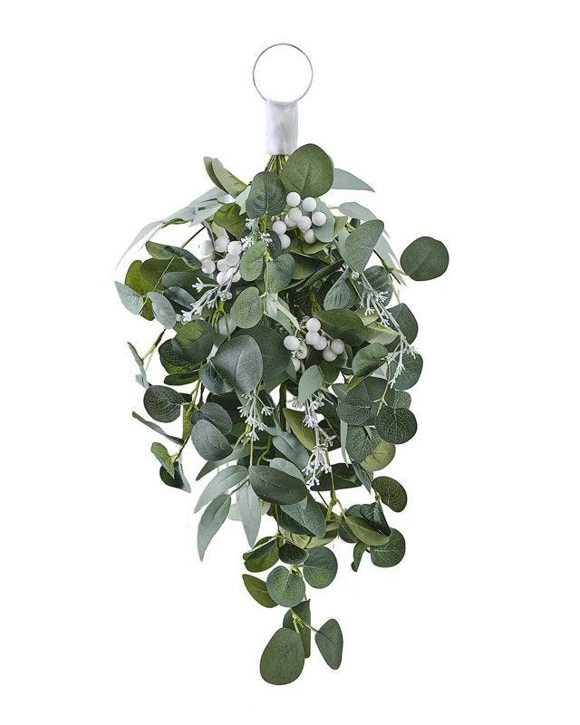 - Add this Christmas door swag to your front door to bring a contemporary touch to your decorations. With Eucalyptus and white berries, this will sure kick off your festive feeling