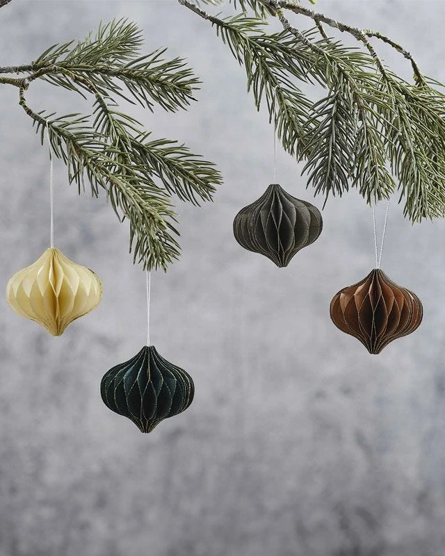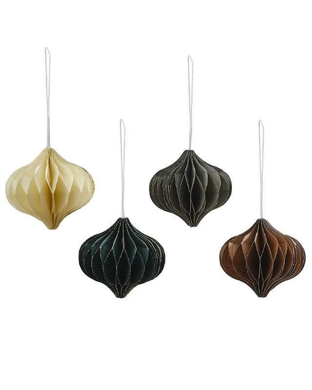 - 4 x honeycomb baubles, measuring 5.6cm (H) x 6cm (W) with 12cm thread