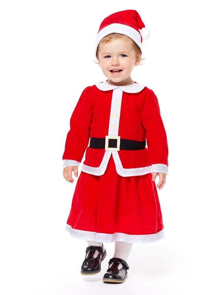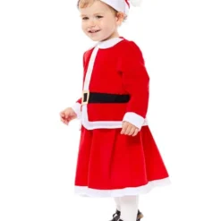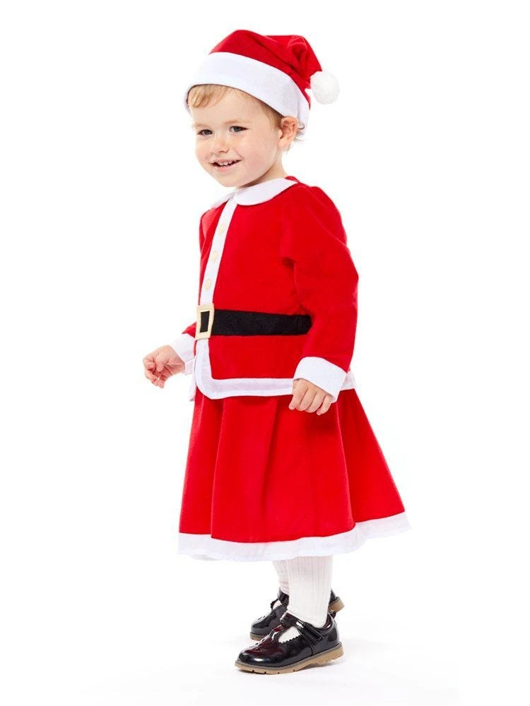 It’s Miss Claus’s time to shine this year! This absolutely adorable skirt, jacket and Christmas hat combo with gorgeous white trim and fabric fake belt around the middle is perfect for turning your little one into a super cute symbol of the season!