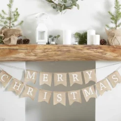 - Create festive feeling in your home this year with this gorgeous hessian burlap Merry Christmas Bunting – perfect for hanging over your mantelpiece