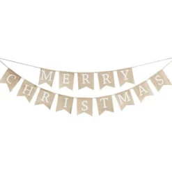 - The hessian flags have Merry Christmas printed in a crisp white design – a traditional feel with a chic twist