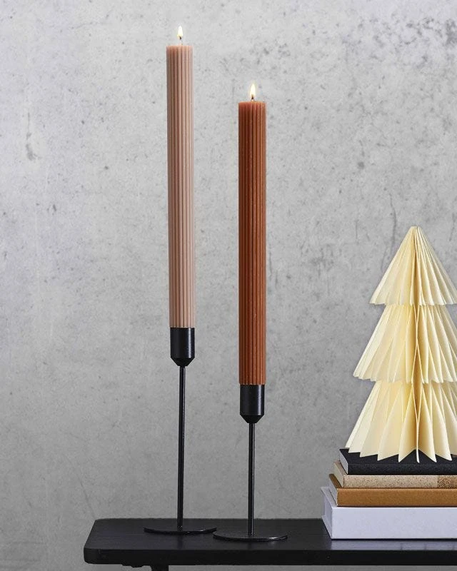 - Each pack contains 2 x Tall ribbed candles, 27.5cm (H) x 2.3cm (W)