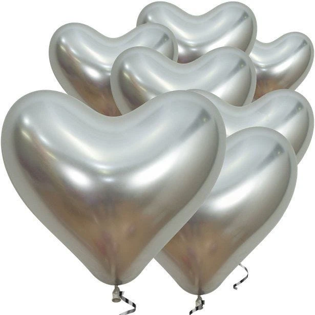 Reflex Crystal Silver Heart Balloons – 14″ Latex (50pk)