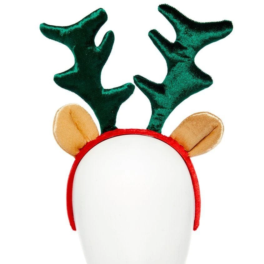 Bring some festive cheer to the office Christmas party, or add some fun to the Christmas dinner table with this reindeer bopper headband. The padded green antlers have wire supports inside to help keep them in shape. Cute reindeer ears complete the look.