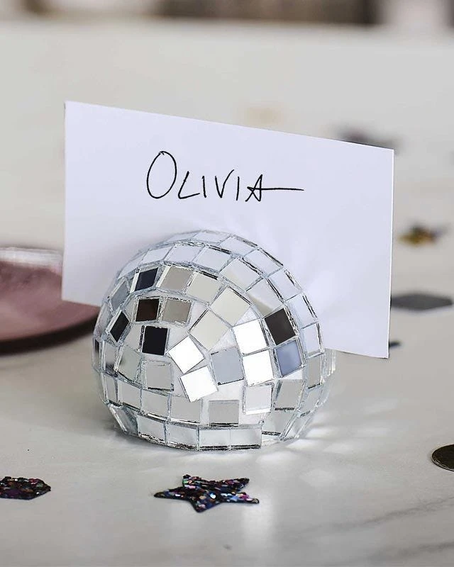 - Continue the disco theme with these mirror ball place card holders, perfect for bringing some fun to the big day or ideal for your festive parties this party season