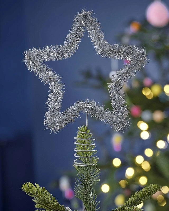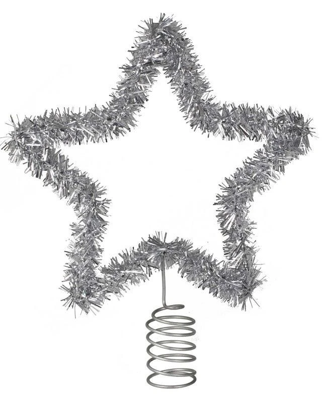 - Add some sparkle to your Christmas tree with our silver tinsel Christmas tree star topper
