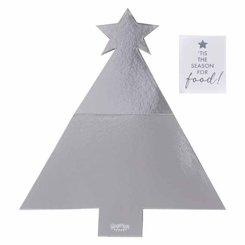 This silver tree shaped grazing board is perfect for hosting this festive season. Each pack contains: 1 x Christmas grazing board measuring 57cm (H) x 40cm (W).