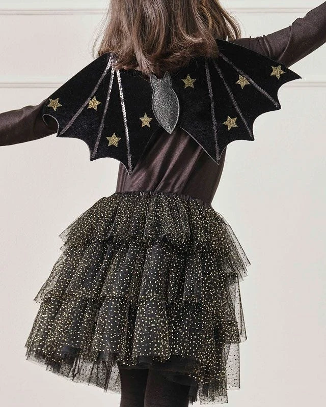 This spellbinding black and gold tutu is this Halloween’s must have – perfect for your little witches and wizards. This tutu is made from black tulle with gold speckles. 100% polyester.