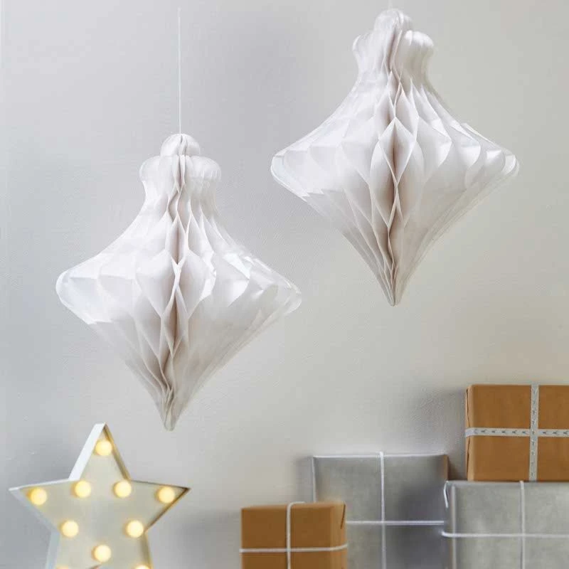 White Paper Honeycomb Baubles – 40cm (2pk)