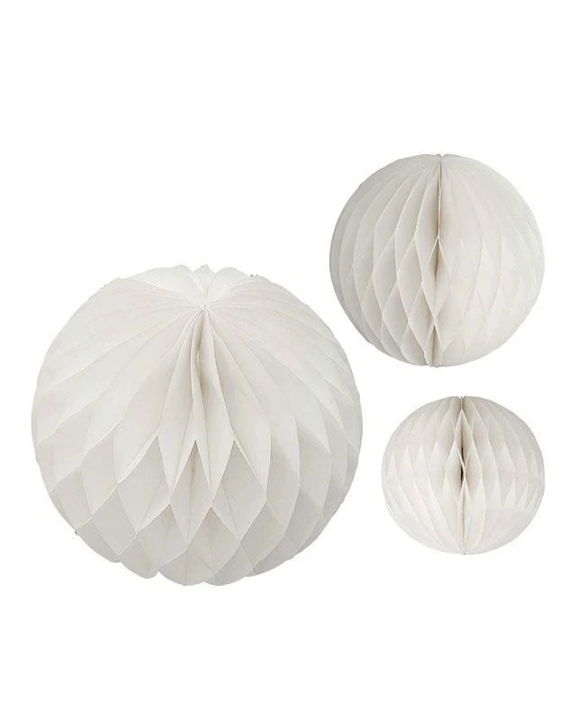 - Each pack contains 3 x white Honeycomb paper decorations in 15/20/30cm