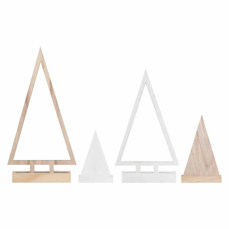 These traditional Christmas wooden decorations will look beautiful displayed around your home. This Christmas fireplace decoration contains 4 x Christmas ornaments. 1 tree decoration measures 30cm (H) x 16cm (W), 1 tree decoration measures 25cm (H) x 14cm (W) and 2 tree decorations measure 14cm (H) x 12cm (W).