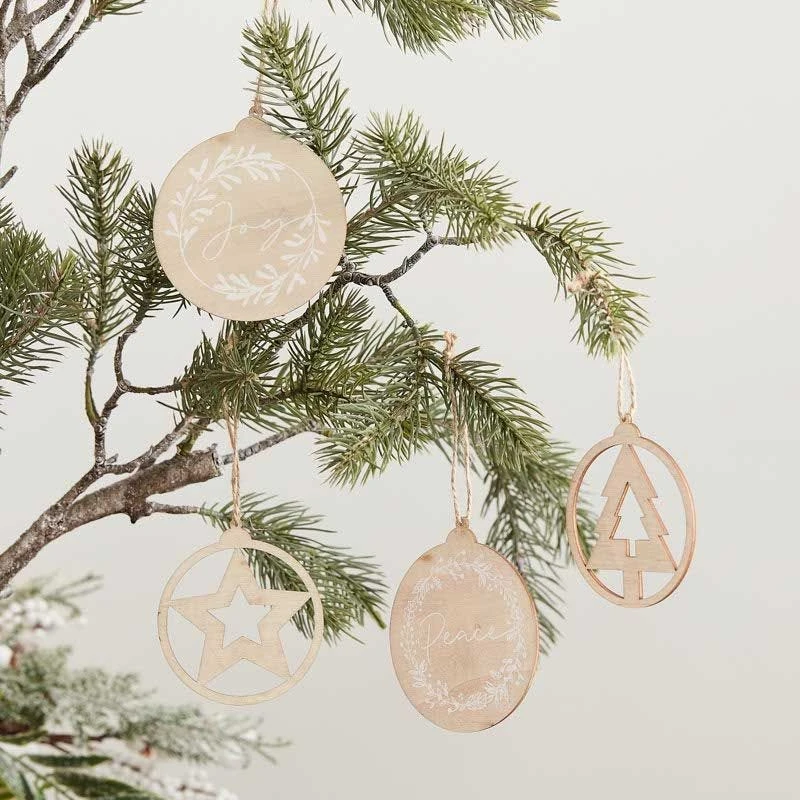 This mix pack of wooden Christmas tree decorations are the perfect choice to bring out year after year. They have brown twine included so they can be hung easily, either above a mantlepiece or pride of place on the Christmas tree. Each pack contains: